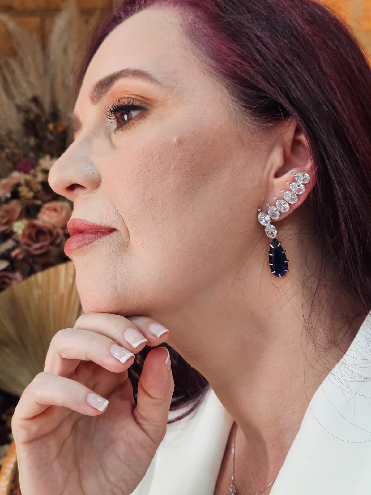 Este brinco estilo ear cuff da Lady Rose é puro luxo e sofisticação! Composto por cristais em formato de gota que contornam a orelha com delicadeza e brilho, finaliza com uma imponente pedra azul safira pendente que traz elegância e profundidade ao visual. Ideal para quem deseja destacar-se com classe em eventos especiais, casamentos e produções noturnas.